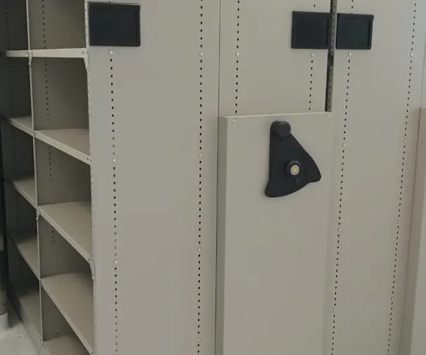 Sistema de Módulos de Estanterías móviles con movimiento mecánico